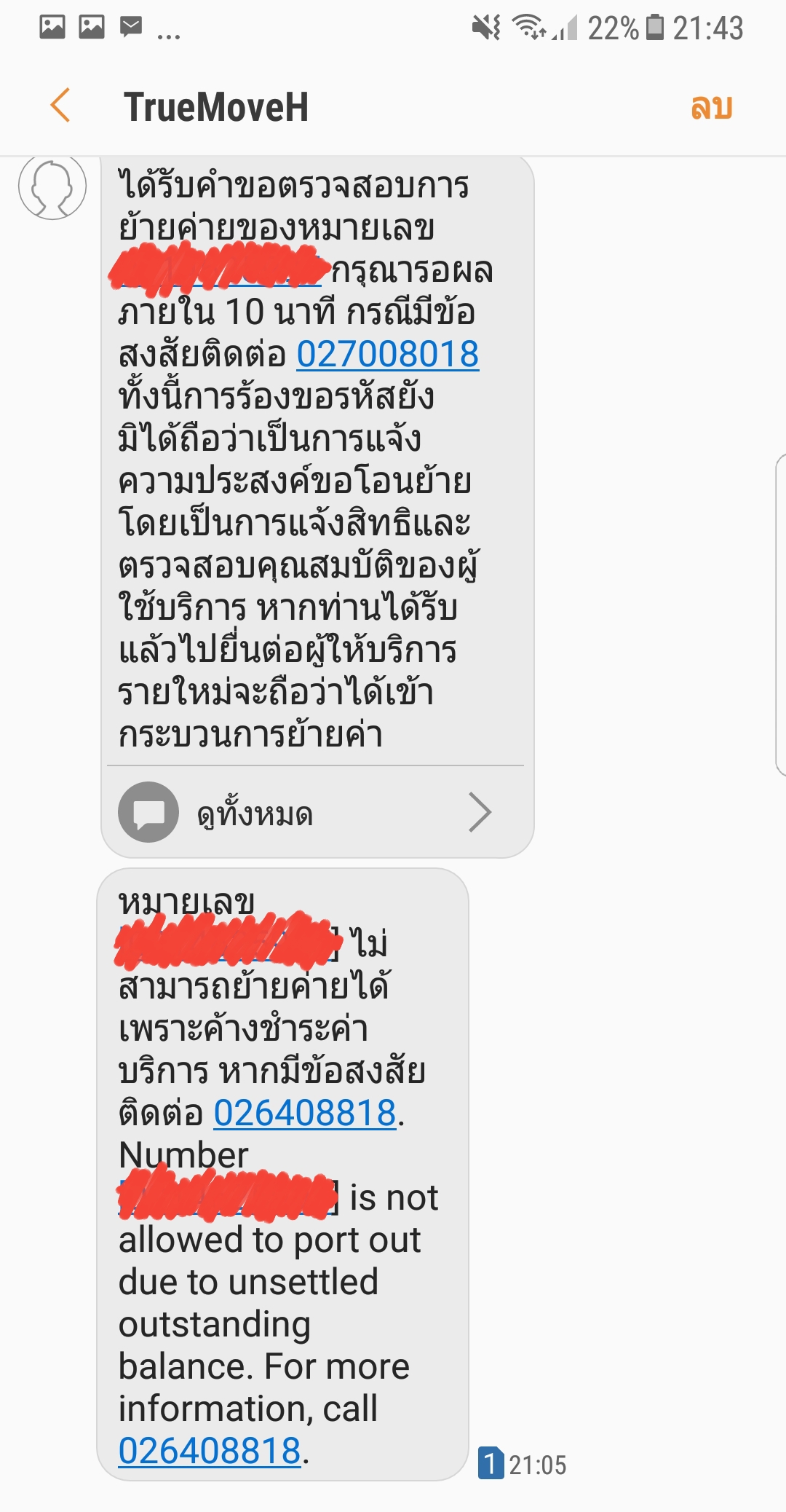 ตอนนี้ต้องการย้ายค่ายจากดีแทคไป ais มากๆ ด้วยความที่ติดต่อยากมากๆ ทำเรื่องย้ายค่ายผ่าน *151*เบอร์# ทำมา3-4 รอบ ย้ายไม่สำเร็จ ด้วยเหตุผลที่ว่ามียอดค้างชำระ และทุกครั้งที่ทำเรื่องการย้ายค่ายจะมีเรื่องค้