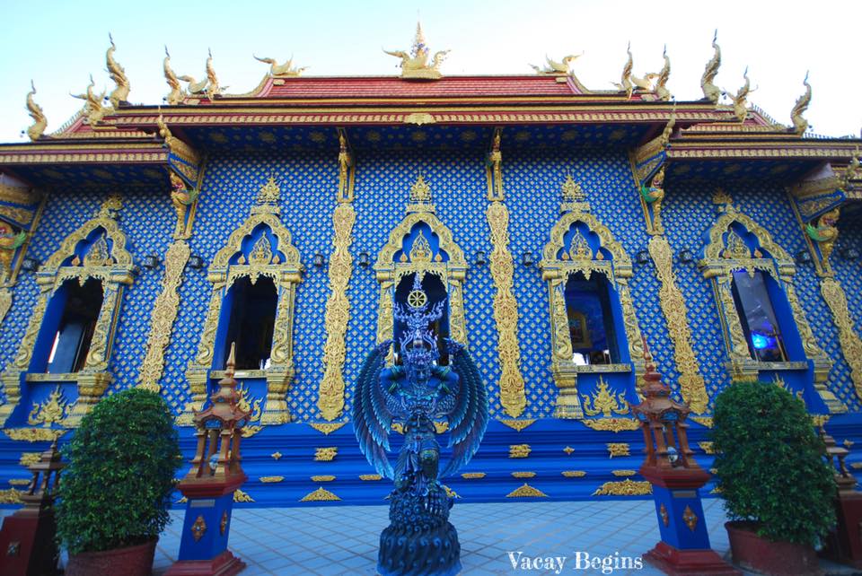 อิ่มจากของหวานจากร้านชีวิตธรรมดา เราก็ไปวัดร่องเสือเต้นกันต่อ ซึ่งวัดจะอยู่ในซอยเดียวกับร้านเลย ห่างกันแค่ 450 เมตรใครมีแพลนจะมา 2 ที่นี้ ก็แนะนำให้จัดโปรแกรมไว้ใกล้ๆกันนะคะ จะได้ไม่ต้องย้อนไปย้อนมา วัดนี้เป็นผลงานของนายพุทธา กาบแก้ว หรือสล่านก ซึ่งเป็นลูกศิษย์ของ อ.เฉลิมชัย โฆษิตพิพัฒน์ ที่นี่จะเน้นโทนสีฟ้าน้ำเงิน ซึ่งจะดูโดดเด่นและแปลกตากว่าวัดอื่นๆทั่วไป