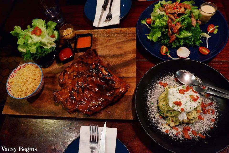 สำหรับเมนูแนะนำก็คือซี่โครงหมู ตามชื่อร้านเลยค่ะ เนื้อหมูนุ่มมาก ไม่ติดกระดูก สามารถเลือกเครื่องเคียงได้ 2 อย่าง และที่สำคัญจานใหญ่โตอลังการในราคาที่สมเหตุสมผลสุดๆ ลืมร้านอาหารฝรั่งในกรุงเทพไปเลย ต้องยกให้ร้านนี้คือ ribs ในดวงใจ ส่วนอีกเมนูที่อยากแนะนำคือ สปาเกตตี้คาโบนาร่า ที่ร้านนี้จะโปะ posh egg ไว้ด้านบน ซอสกำลังดี ใครชอบคาโบนาร่า อยากแนะนำให้มาลองร้านนี้เลยค่ะ
