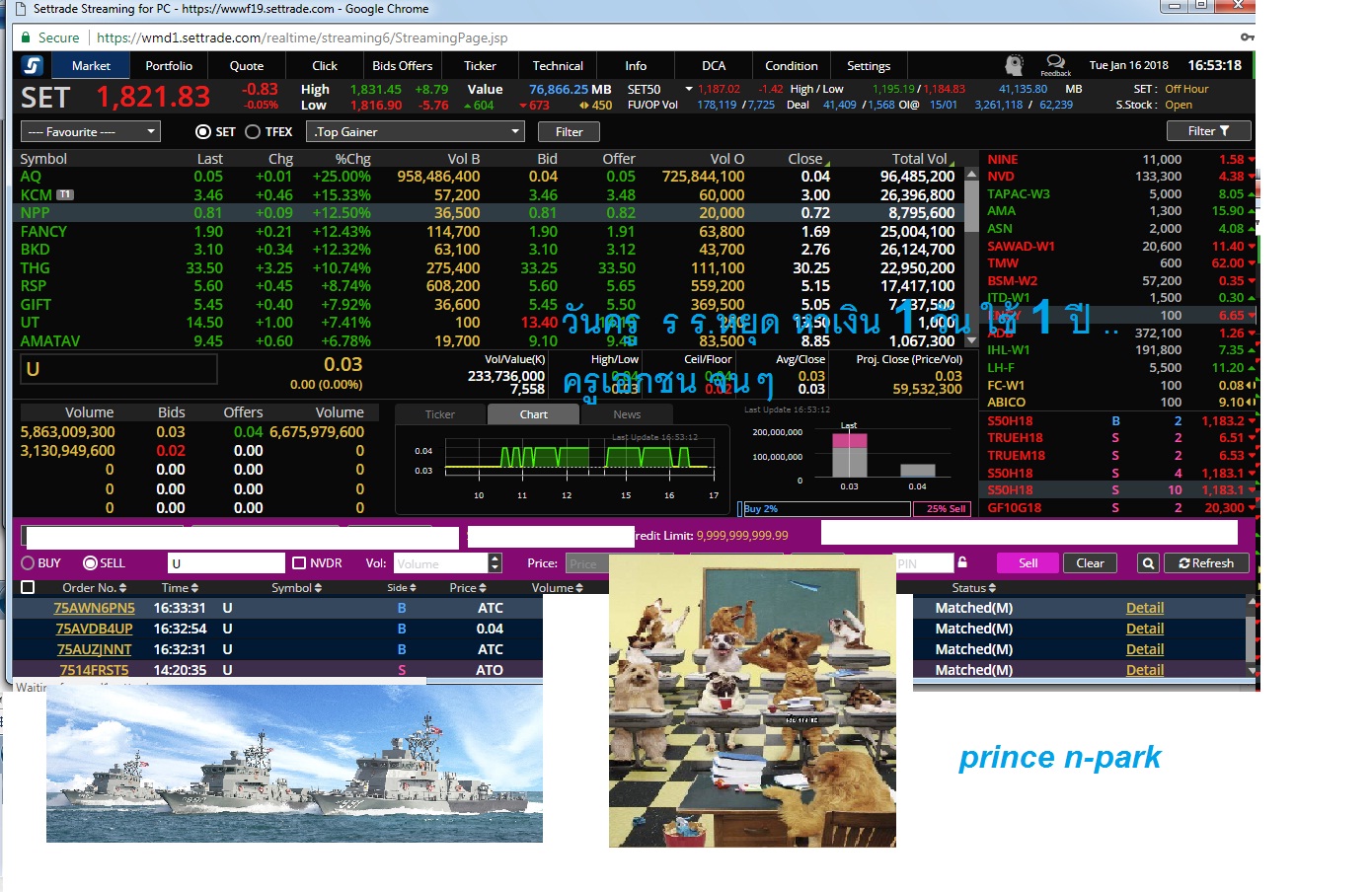 16 ม.ค. 2561 วันครู ร ร หยุด ก็เลยได้มีโอกาสหาเงินจากตลาดหุ้น.ผลที่ได้ก็น่าพอใจ ได้เงินพอให้มีชีวิตรอดไปอีกครูเอกชนจนๆ