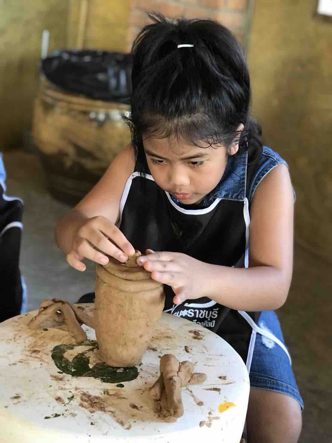 ที่นี่เค้าจะมีกิจกรรมต่างๆ ให้เด็กๆ ได้เพลิดเพลิน มากมายเลยค่ะ ไม่ว่าจะเป็น เด็กโอ่งพาเพลิน กิจกรรมฝึกสมาธิ ซึ่งเด็กๆ จะได้สัมผัสดินเหนียวจริงๆ ตามภาพปั้นดินเหนียวกันจริงๆ กันแบบจริงๆ จังๆ เลยค่ะ โดยดินเหนียวจะเป็นดินเหนียวแดงจากราชบุรี เองค่ะ ซึ่งคุณพ่อคุณแม่สามารถร่วมกิจกรรมไปพร้อมกับเด็กๆ ได้เลยค่ะ โดยกิจกรรมเหล่านี้จะช่วยเสริมสร้างทักษะกระบวนความคิดแบบอิสระ นอกห้องเรียน และส่งเสริมความรู้ควบคู่กับการอนุรักษ์ศิลปวัฒนธรรมอีกด้วย ความรู้นี้หาไม่ได้ในห้องเรียนสมัยปัจจุบันนี้แล้วนะคะ