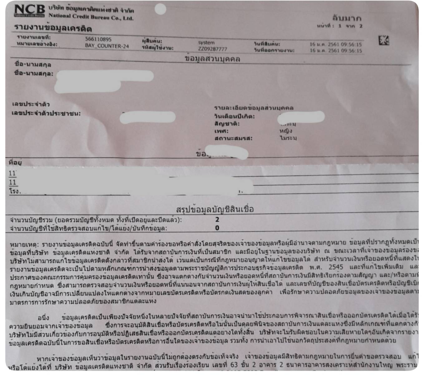 ไปขอตรวจสอบว่าติดเคดิตบูโรหรือเปล่า แต่แบบนี้คือติดหรือไม่ติดค่ะ