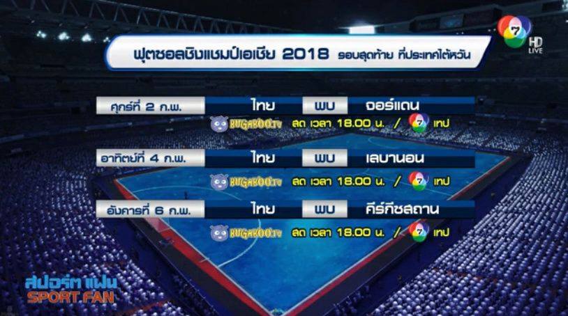 แฟนฟุตซอลเฮลั่น ! ช่อง 7 สี ถ่ายทอดสดการแข่งขันฟุตซอลชิงแชมป์เอเชีย 2018 ที่ประเทศใต้หวัน ผ่านทาง Bugaboo