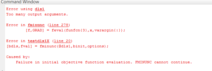 โดยจะเอาค่าต่างๆแทนในฟังก์ชัน dls1 เพื่อที่จะหาค่าของตัวประมาณ b0 b1 ที่ทำให้ f มีค่าสูงสุด แต่พอผมรันโปรแกรม ได้ error ดังนี้ครับ