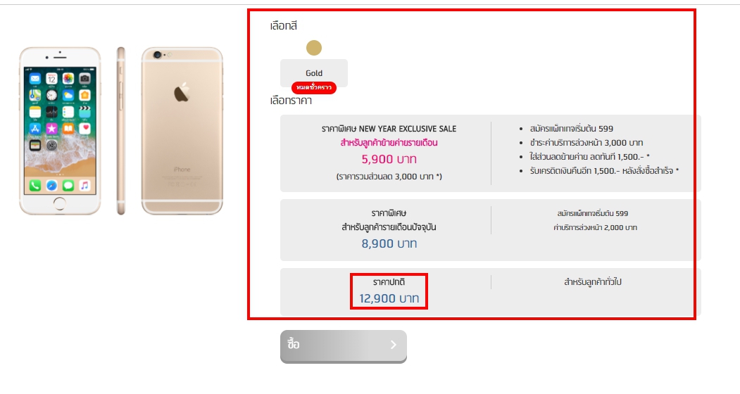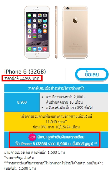 คืออยากเปลี่ยนโทรศัพท์ แล้วเห็นราคา I6 ทางเว็บ ราคา 11900 **ลูกค้ารายเดือนหรือเติมเงิน ไม่ติดสัญญา