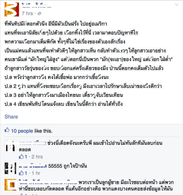 นับร้อย ๆ คห. ที่สุดหยาบคาย แต่ขอยกมาเป็นตัวอย่างแค่ส่วนเสี้ยว