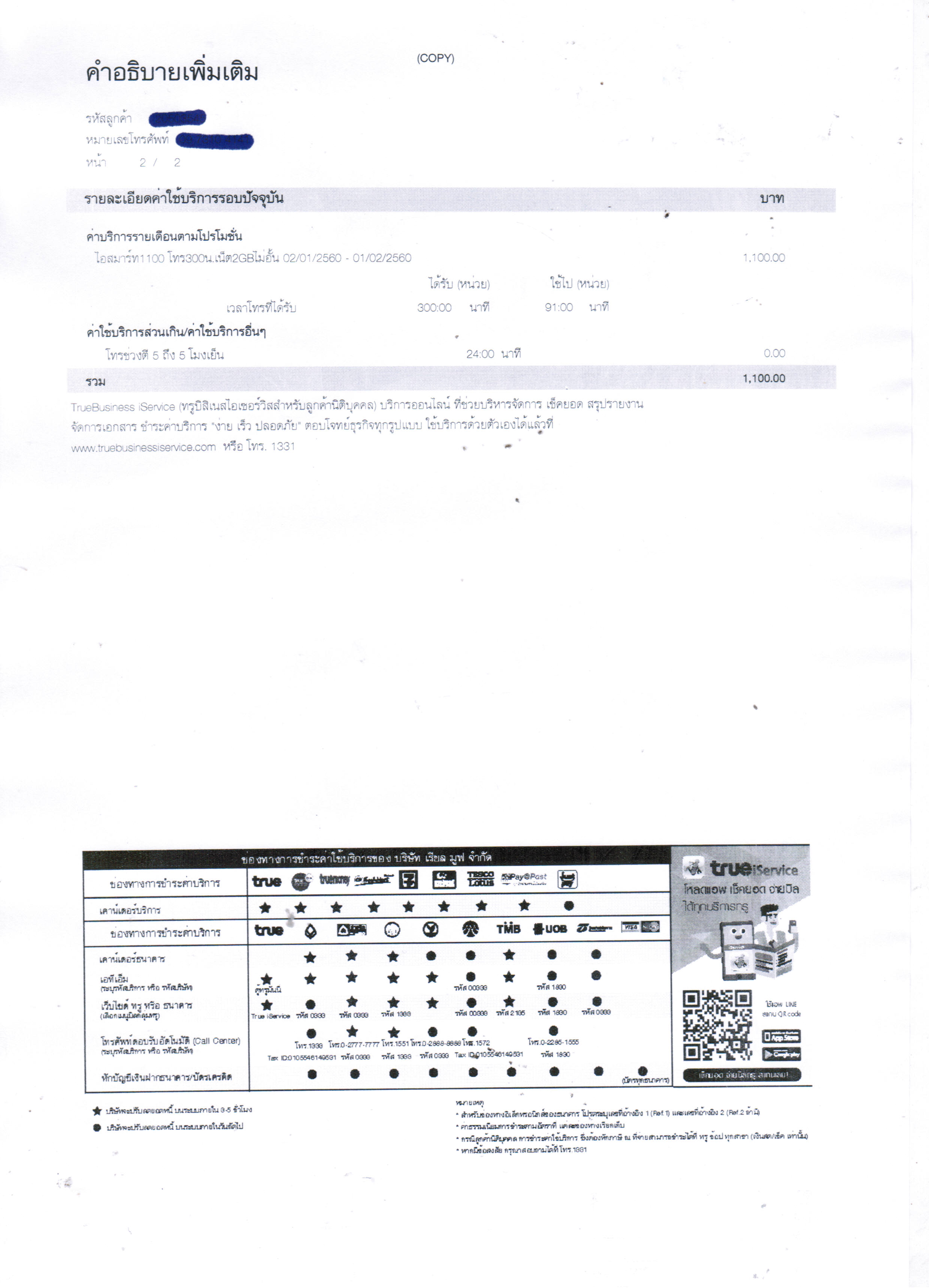 เป็นโปรค่าโทรของทรู ค่ะ เปิดมา 2 ปีเต็มๆ ในนามบริษัท จ่ายทุกเดือนขั้นต่ำคือ 1,177 บาท เกินบ้างเล็กน้อยบางเดือน