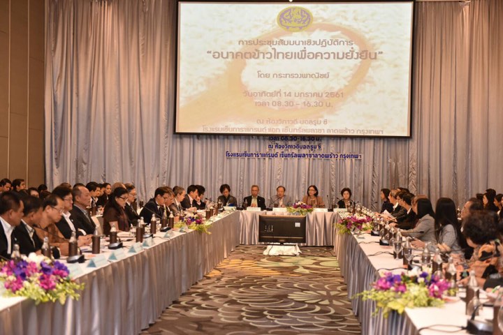 การประชุมเชิงปฏิบัติการ “อนาคตข้าวไทยเพื่อความยั่งยืน” ถือเป็นมิติใหม่สำหรับอุตสาหกรรมข้าวไทย ที่ทุกภาคส่วนที่เกี่ยวข้องในอุตสาหกรรมข้าวไทย ได้มารวมตัวกันทั้ง เอกชน-เอกชน เกษตรกร และภาครัฐ นักวิชาการผู้เชี่ยวชาญ ในอุตสาหกรรมข้าวไทย ประมาณ 200 คน ในรูปแบบ “ประชารัฐพลัสพลัส” เป็น “Thai Rice United” เพื่อให้เกิดการปรับกระบวนทัศน์และสร้างมิติใหม่สำหรับอุตสาหกรรมข้าวไทย ร่วมกันวิเคราะห์ถึงสถานการณ์ของอุตสาหกรรมข้าวไทยทั้งปัจจุบันและอนาคต และเสนอมุมมอง แลกเปลี่ยนข้อคิดเห็นตลอดจนเสนอแนะแนวทางในการพัฒนาอุตสาหกรรมข้าวไทย และการดำเนินนโยบายของภาครัฐในทุกมิติ