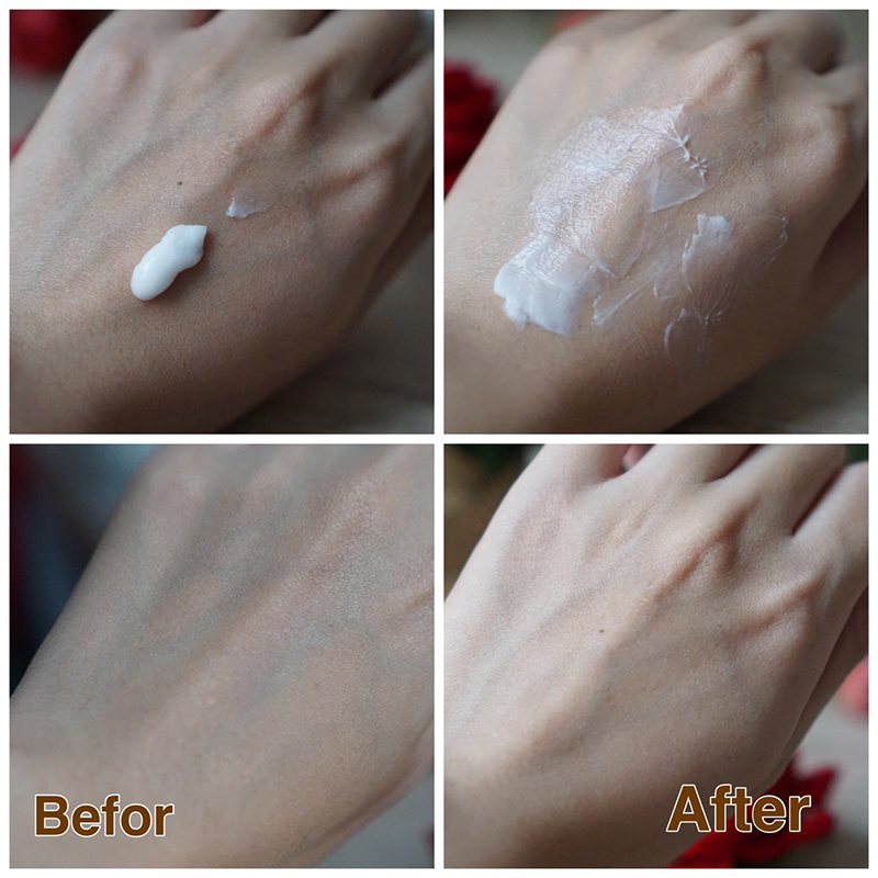 - ในรูปพลอยทำ Mini review สั้น ๆ นิดนึงค่ะ จาก Befor ก่อนทาผิวนี้แห้งมากกก ดินแล้งรึป่าวคะคุณ5555 แต่พอทาจะเห็นได้ว่า After มีความชุ่มชื่น ดูเนียนนุ่มขึ้นมาทันที ตรงนี้พลอย Happy มาก ๆ เลย เพราะทาเสร็จผิวนุ่มมาก ๆ ค่ะ ด้วยตัวครีมค่อนข้างเข้มข้นด้วยแหละ ส่วนใครที่กังวลว่าครีมจะเหนียวหรือหนักหน้ารึไม่นั้น บอกได้เลยว่าไม่เหนียวจ้า พลอยทาก่อนนอน และตอนเช้าตามปกติเลยค่ะ หรือใครที่มีผิวหน้ามันมาก ๆ อาจจะทาตอนเช้าน้อยกว่าตอนกลางคืนนิดนึงค่ะ