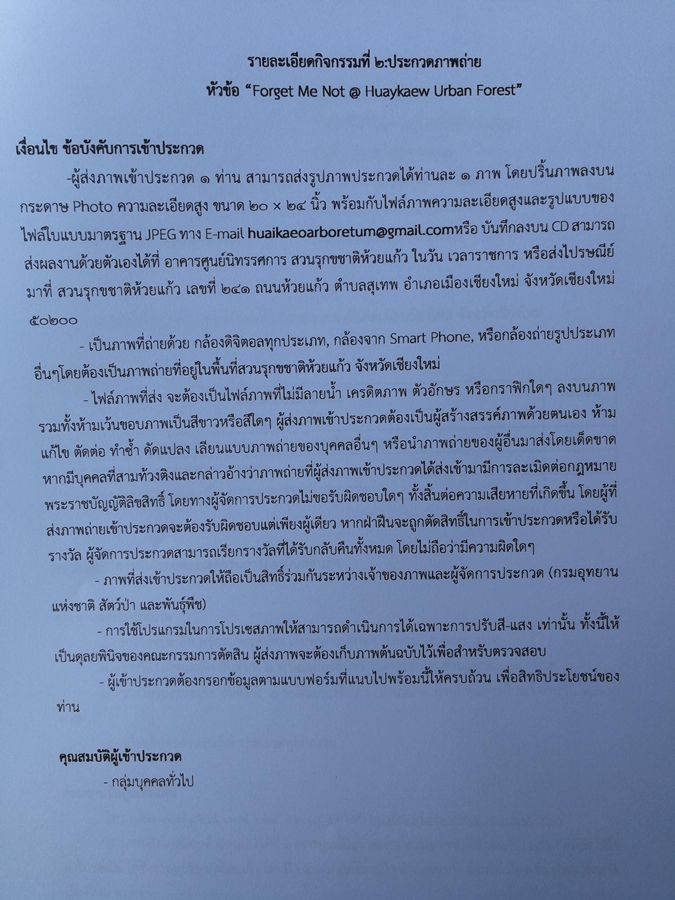 สวนรุกขชาติห้วยแก้ว จังหวัดเชียงใหม่ จัดให้มีกิจกรรมการประกวดภาพถ่าย หัวข้อ Forget Me Not @ Huaykaew Urban Forest