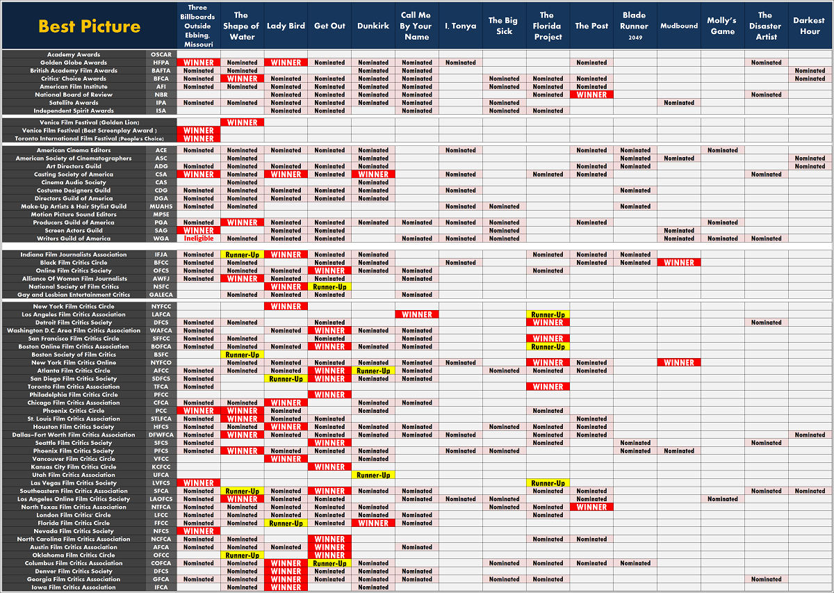 ส่วน The Big Sick, The Florida Project, The Post, Blade Runner 2049, Mudbound, Molly’s Game, The Disaster Artist และ Darkest Hour สูสีมากกกก