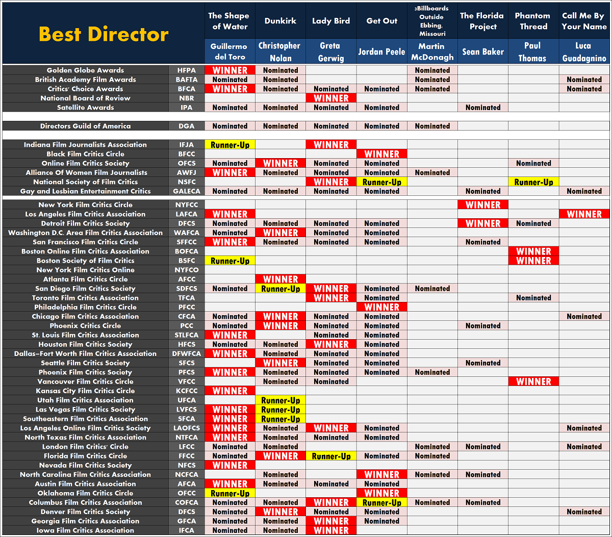 Guillermo del Toro จากเรื่อง The Shape of Water กวาดรางวัลทั้งจากลูกโลกทองคำ และ Critics Choice Awards แถมยังเข้าชิง DGA คาดว่าไม่น่าจะหลุดออสการ์แน่นอน