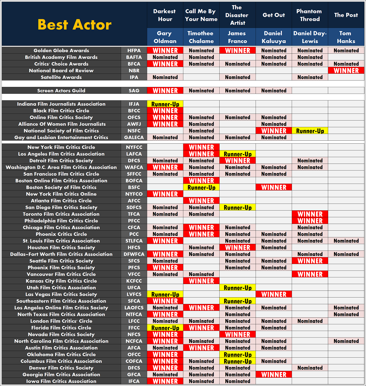 ตอนแรก ไฟ้ทกันระหว่างลุง Gary Oldman จาก Darkest Hour กับหนู Timothee Chalame จาก Call Me By Your Name แต่ดูเหมือนตอนนี้จะชัดเจนขึ้นมาก เมื่อลุงกวาดรางวัลเรียบทั้ง ลูกโลกทองคำ, Critics Choice Awards และล่าสุด SAG Awards