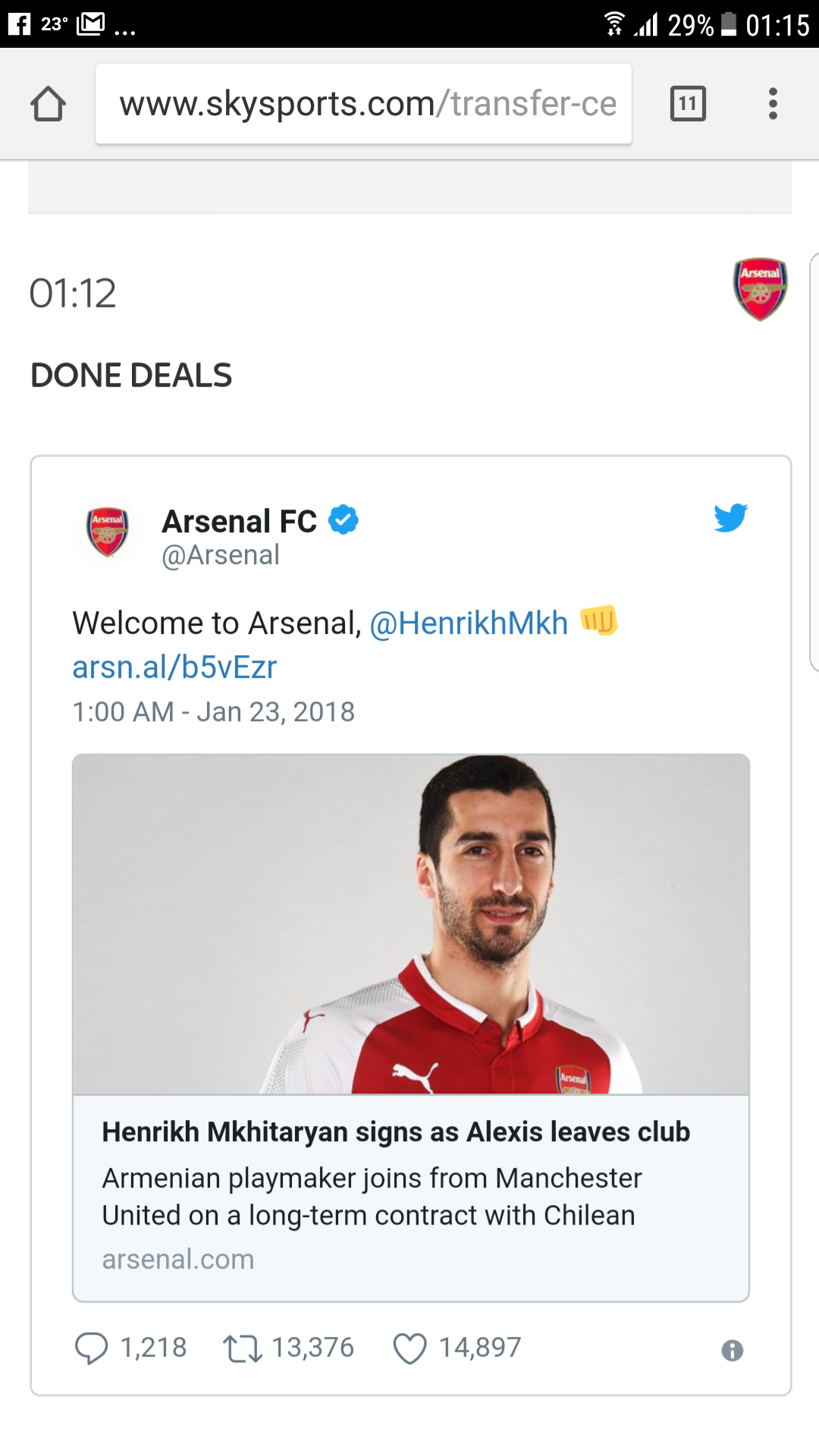 DONE DEAL : WELCOME TO ARSENAL HENRIKH MKHITARYAN