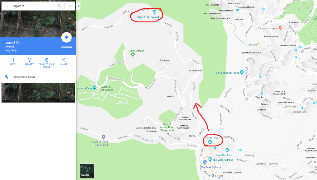 ค่าแทกซี่ราว 200-300 HKD จุดที่ถ่ายรูปคือ เดินไปตาม ถนนชื่อว่า Lu gard rd.