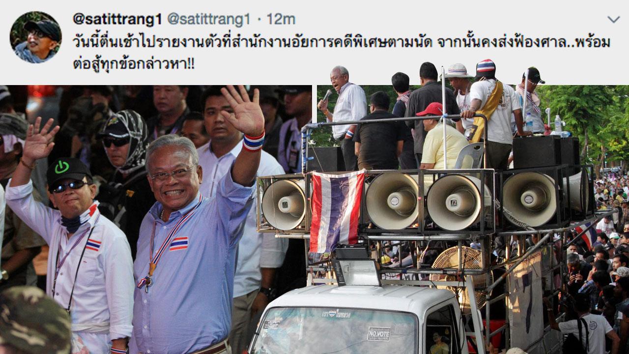 สาทิตย์ ลั่นมาฟังคำสั่งฟ้องคดีกบฏ ร่วมสุเทพ ปิดกรุง ขอสู้ทุกข้อกล่าวหา