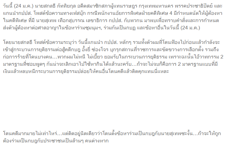 สกลธี ชี้ไม่ถูกต้อง ตั้งข้อหากบฎร่วมแค่สุเทพ ที่ถูกต้องร่วมกับปชช.เป็นล้านๆต่างหาก