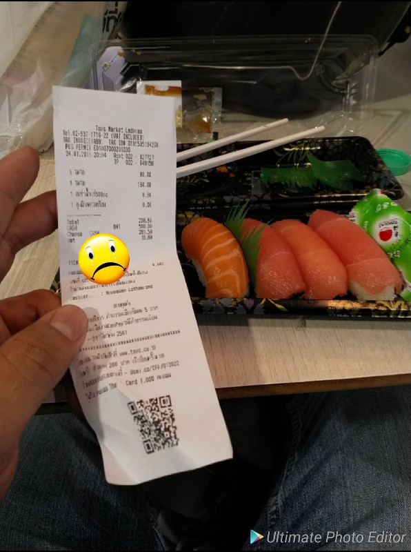 เนื่องด้วยวันนี้ ผมแวะซื้อของและทานอาหารที่ห้าง วันนี้ ผมเลือกซื้ออาหารพร้อมทานจากจุดจำหน่ายอาหารญี่ปุ่น ก็หยิบมา 2 รายการครับ คือซูชิหน้าปลาดิบและไข่กุ้ง(ขอใข้คำบ้านๆละกันนะครับ) หมดเงินไปประมาณสองร้อย แต่สิ่งที่ได้คือ
