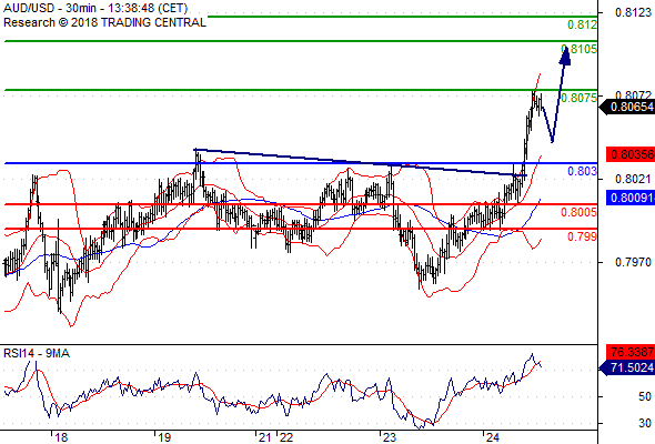 จุดที่ต้องการ: สถานะซื้อสูงกว่า 0.8030 เป้าหมายต่อไปที่ 0.8075 และ 0.8105