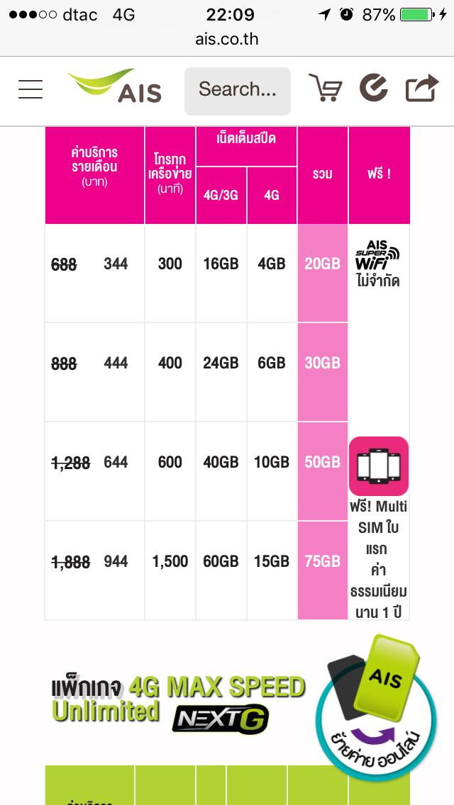 ใช้ดีแทคมา 14 ปี โปรฯดีๆมีให้คนที่ย้ายค่ายเท่านั้น วันก่อร ดีแทคโทรมาแจ้งว่าโปรที่ใช้หมดแล้ว จะเปลี่ยนโปรเป็น 449 โทร 400 นาที เน็ต 30gb คือจะให้เราเปลี่ยนเลยโดยไม่ค้องคิดอะไรนี่มันก็นะ ยังไม่ทันดูเลยว่ามีโปรแะไรบ้าง หลังจากที่ดูโปรแล้วคิดว่าโอเคแล้วจะเปลี่ยนตามที่ดีแทคโทรมา ปรากฎว่าไม่มีค่ะ ในหน้าเวปที่ให้เปลี่ยน ถามคอลเซ็นเตอร์ก็ไม่มีเข่นกันมีแต่ให้คนที่ย้ายค่ายเบอร์เดิม ไปดูของค่าย เอไอเอส โปรฯ ลด 50% น่าสนใจ เนตได้ 30 gb จ่ายเดือนละ 444 บาท กะจะย้ายสิ้นเดือนนี้ ของทรูดูแล้วน้อยจัง มี่ให้ ดีแทคไม่ต้องพูดถึง ย้ายค่ะ