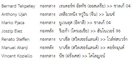 2. กลุ่มนักเตะที่ย้ายเข้า-ย้ายกลับ มาจากต่างลีก ภายในประเทศเยอรมัน
