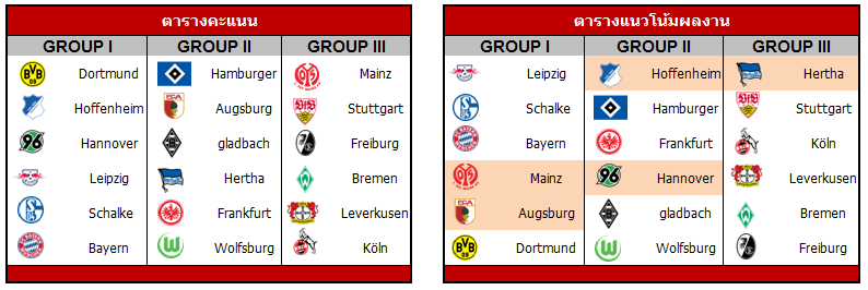 เมื่อแบ่งกลุ่มแล้วก็มาดูผลการแข่งขันว่าเป็นไปตามคาดไหม ที่ต้องดูตรงนี้ เพราะ จขกท.มีสมมติฐานว่า ทีมใดก็ตามที่มีผลงานผิดคาดผิดฟอร์มบ่อยๆ โอกาสที่จะประสบความสำเร็จอย่างยั่งยืนนั้นมีค่อนข้างน้อย หรือเรียกง่ายๆ ว่า