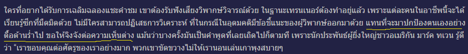 ทีมดาวรุ่งปะทะทีมเมืองหลวง ฟอร์มของทีมดาวรุ่งดูจะเหนือกว่า แต่กลับทำได้แค่เสมอ อันนี้ก็ไม่รู้จะโทษอะไรดี ก็คงให้เครดิตทีมเมืองหลวงไปละกัน แต่ที่แน่ๆ จขกท.รู้สึกแย่ทั้งคู่ กับผลงานที่ดูป่วยๆ สำหรับทีมที่ได้เป็นตัวแทนไปเล่นเวทียุโรปชุดนี้ ซึ่งก็คงเห็นคล้ายกับความเห็นของอดีตนักเตะ ที่เพื่อนของ จขกท. คนหนึ่งส่งมาให้อ่าน ซึ่งต้องขอบคุณเขามากที่ทำให้จขกท. รู้ว่าไม่ได้คิดไปเองคนเดียว มาเปรียบเทียบความเห็นกันดูดีกว่า