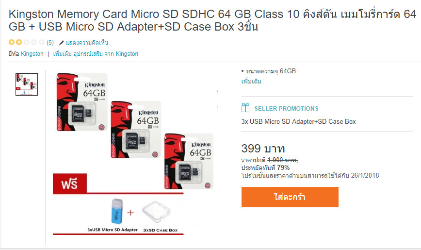 ทดลองสั่ง sd card จาก lazada เพราะเห็นว่าถูกดี (ตอนสั่งราคาแพงกว่านี้ประมาณ 100 ด้วยนะ) เตรียมใจแต่เแรกแล้วว่า น่าจะมีปัญหา ต้องคืนของ สุดท้ายหลังจากรอสินค้า 2 สัปดาห์ สมใจนึกเลยจริง ๆ ของที่สั่ง