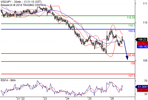 USD/JPY การซื้อขายระหว่างวัน: แนวต้านระยะสั้นสำคัญที่ 109.80