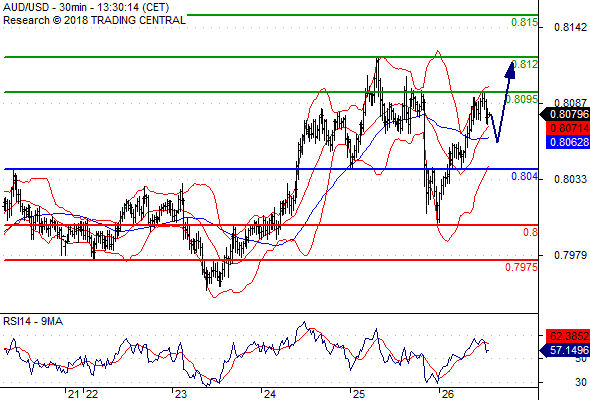 จุดที่ต้องการ: สถานะซื้อสูงกว่า 0.8040 เป้าหมายต่อไปที่ 0.8095 และ 0.8120