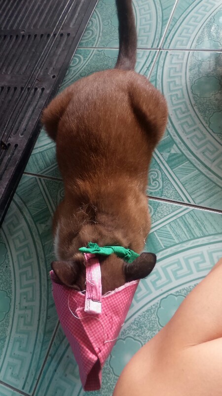 เช้ามาลงไปข้างล่าง ถามแม่ว่าเห็นแมวไหม แม่บอกว่าตะกี้มันเพิ่งมากินข้าว อยู่แถวๆนี้แหละ ลองเรียกดู ก็มาจริง หาคลอล่าไม่เจอ เลยใช้แต่ที่ครอบปาก