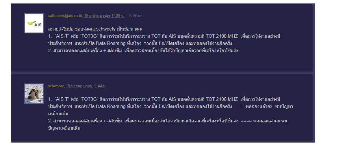 : โทรไปที่ศูนย์ก้อได้รับคำตอบเหมือนเดิม ว่าจะส่งเรื่องเร่งด่วนให้ทางวิศวฯ วิเคราะต่อไป