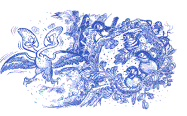 "โน่นแน่ะ นกสองหัว โน่นแน่ะ นกสองหัว ผู้ยิ่งใหญ่" บรรดานกทั้งหลายพากันกล่าวขานดังนี้ ในยามที่นกสองหัวบินอวดตัวไปมา