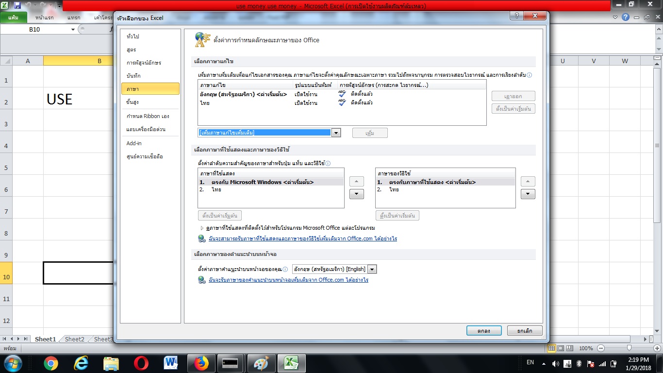 เปลี่ยน เมนู excel จากไทย เป็น อังกฤษ ต้อง เปลี่ยน ค่าตรงไหนครับ