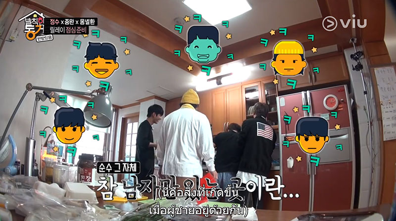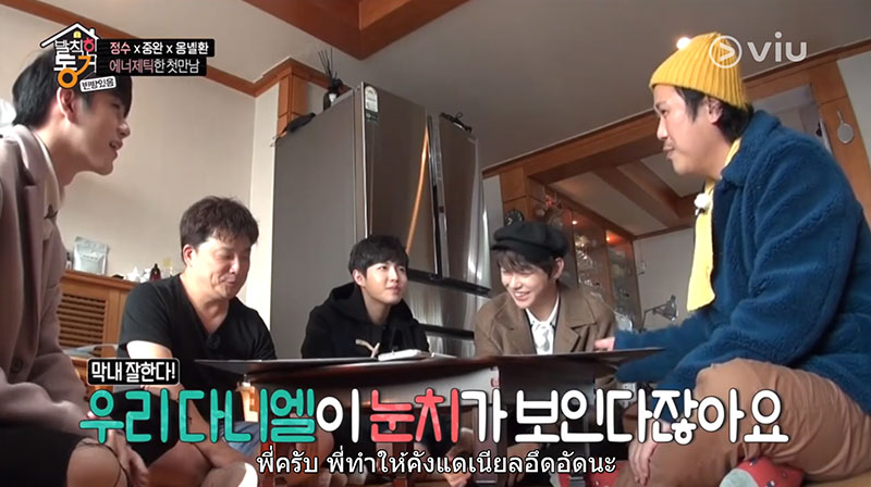ซึ่งบรรยากาศในบ้านก็เริ่มต้นด้วยการวางตัวไม่ถูกของเพื่อนร่วมบ้านต่างวัย เงอะ ๆ งะ ๆ ไม่รู้จะทำตัวยังไงตามประสาคนแปลกหน้า แต่ก็ค่อย ๆ ทำความรู้จักและเริ่มต้นการใช้ชีวิตร่วมกันด้วยการทำอาหารเองในมื้อแรก จากเครื่องปรุงที่ 3 หนุ่ม Wanna One พกติดตัวมาด้วย ซึ่งก็ถือได้ว่าเป็นวิธีที่ดีในเริ่มทำความรู้จักกันเลยละค่ะ แถมยังได้เห็นสกิลพ่อครัวของหนุ่ม ๆ อีกด้วย เก่งจังเลยนะคะ ทำกับข้าวก็เป็นด้วย