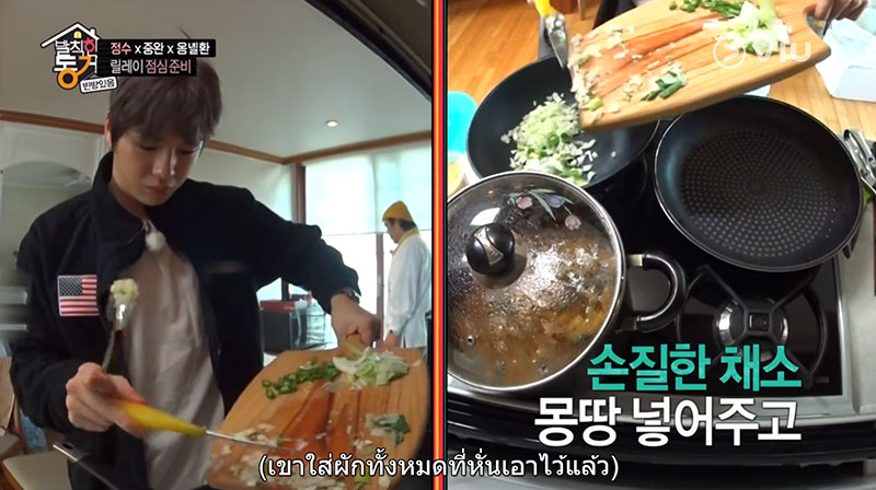 องซองอู บอกว่าเค้าคิดถึงและอยากกินอาหารที่ทำกินกันเองง่าย ๆ ในครอบครัว ซึ่งเค้าก็ได้เตรียมเครื่องปรุงสำหรับทำเนื้อซี่โครงย่างและข้าวผัดกิมจิมาด้วย (คือพร้อมมากกกก สายกินที่แท้จริงค่ะ)