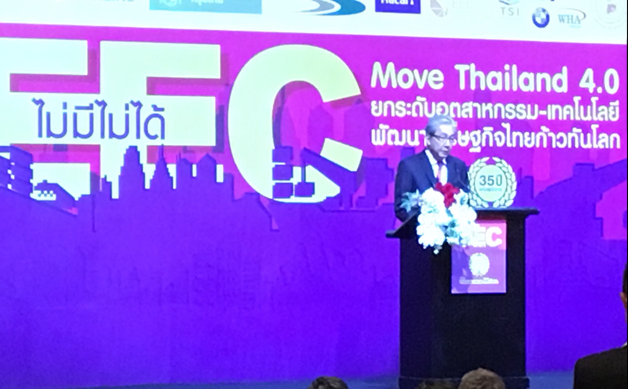 นายสมคิด จาตุศรีพิทักษ์ รองนายกรัฐมนตรี กล่าวในการสัมมนา EEC ไม่มีไม่ได้ ระบุว่า จากการที่ประเทศชั้นนำทั่วโลกเป็นช่วงขาขึ้น ทำให้ IMF มีการปรับประมาณการณ์เศรษฐกิจโลก ขยายตัวร้อยละ 3.9 สอดคล้องกับเศรษฐกิจไทยที่มั่นใจว่าจะดีขึ้นอย่างแน่นอน ทั้งจากตัวเลขการส่งออกที่เชื่อว่าจะขยายตัวดี ซึ่งในปีที่ผ่านมาขยายตัวสูงถึงร้อยละ 9.9 การลงทุนต่างประเทศน่าจะใกล้เคียงกับปีก่อนที่ 6 แสนล้านบาท การท่องเที่ยวดีขึ้นต่อเนื่อง และภาครัฐกำลังต่อยอดแก้ปัญหาความยากจน และเร่งการใช้จ่ายการลงทุนในรัฐวิสาหกิจ จึงไม่มีปัจจัยใดที่ทำให้ไทยชะลอตัวปีนี้ จึงถือเป็นโอกาสของไทย เพราะทั่วโลกมองเห็นอาเซียนเป็นยุทธศาสตร์ที่น่าลงทุน และไทยน่าลงทุนมากที่สุดในอาเซียน โดยได้ทำ EEC เป็นพื้นที่ที่เอื้อต่อการลงทุนให้กับนักลงทุนต่างชาติให้มากที่สุดเพื่อให้อุตสาหกรรมของไทยได้พัฒนา ไม่ล้าหลัง สามารถแข่งขันได้ด้วยเทคโนโลยี โดยรัฐบาลจะพยายามพลักดันการลงทุนใน EEC อย่างเต็มที่จนวันสุดท้ายของการทำงาน เพื่อรักษาฐานของการลงทุนในไทยให้ได้ โดยเชื่อว่า พ.ร.บ.EEC จะแล้วเสร็จและมีผลบังคับใช้ในเร็วๆนี้
