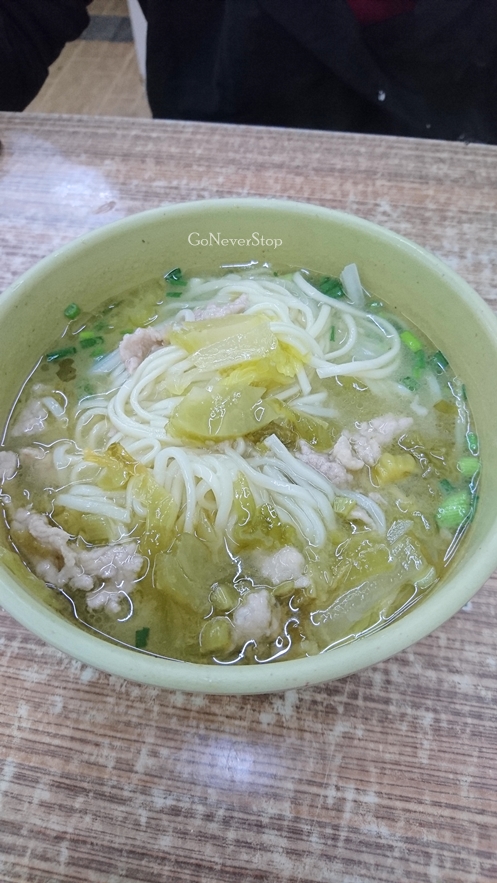 ก๋วยเตี๋ยวหมูชิ้นน้อย ๆ กับผักดอง เออ...ดูเข้ากันแฮะ เดี๋ยวเราจะไปลองทำที่บ้านดูบ้าง