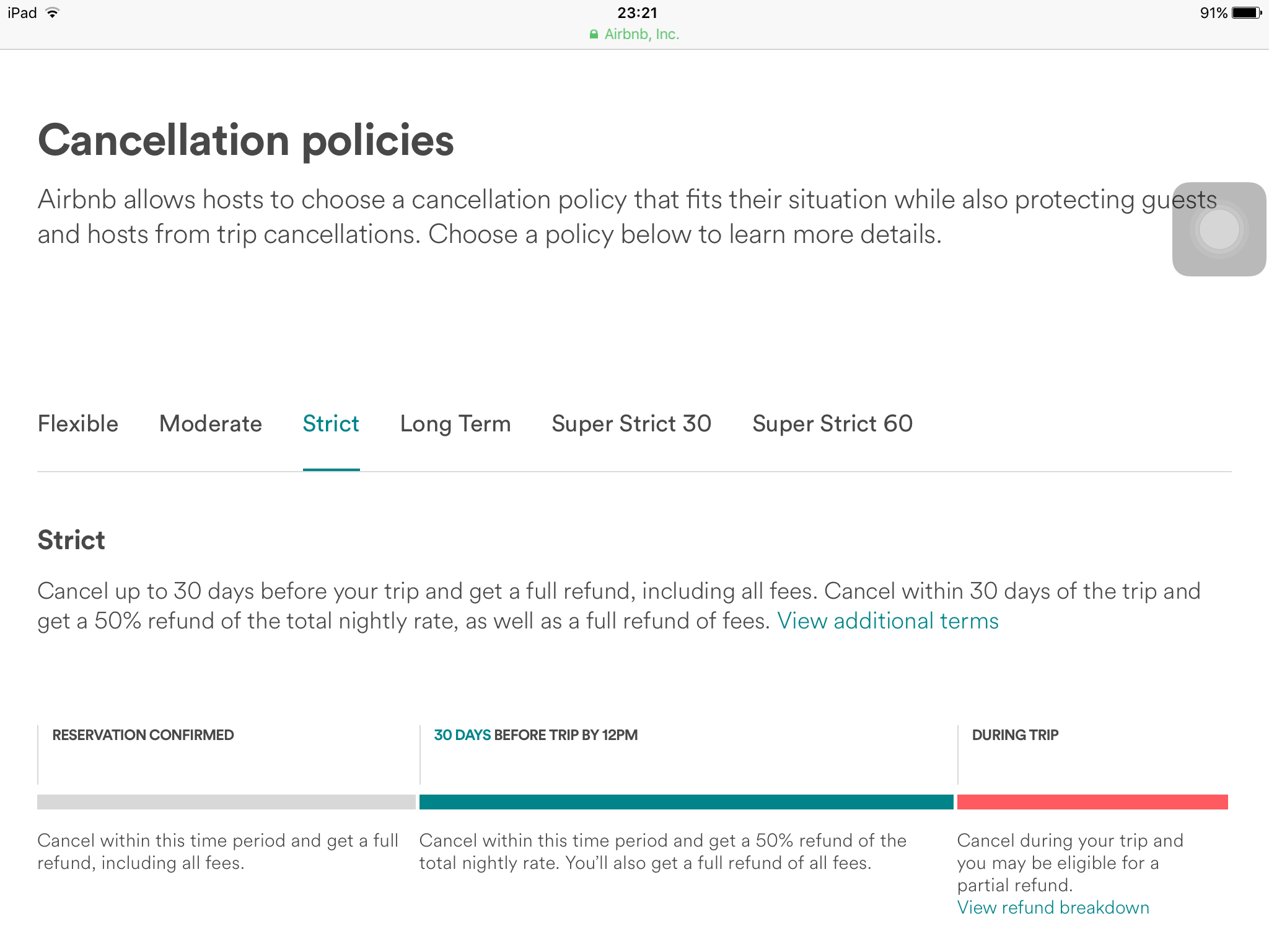 ยกเลิกห้องพัก airbnb แบบเข้มงวด รบกวนผู้รู้ช่วยแนะนำด้วยคะ