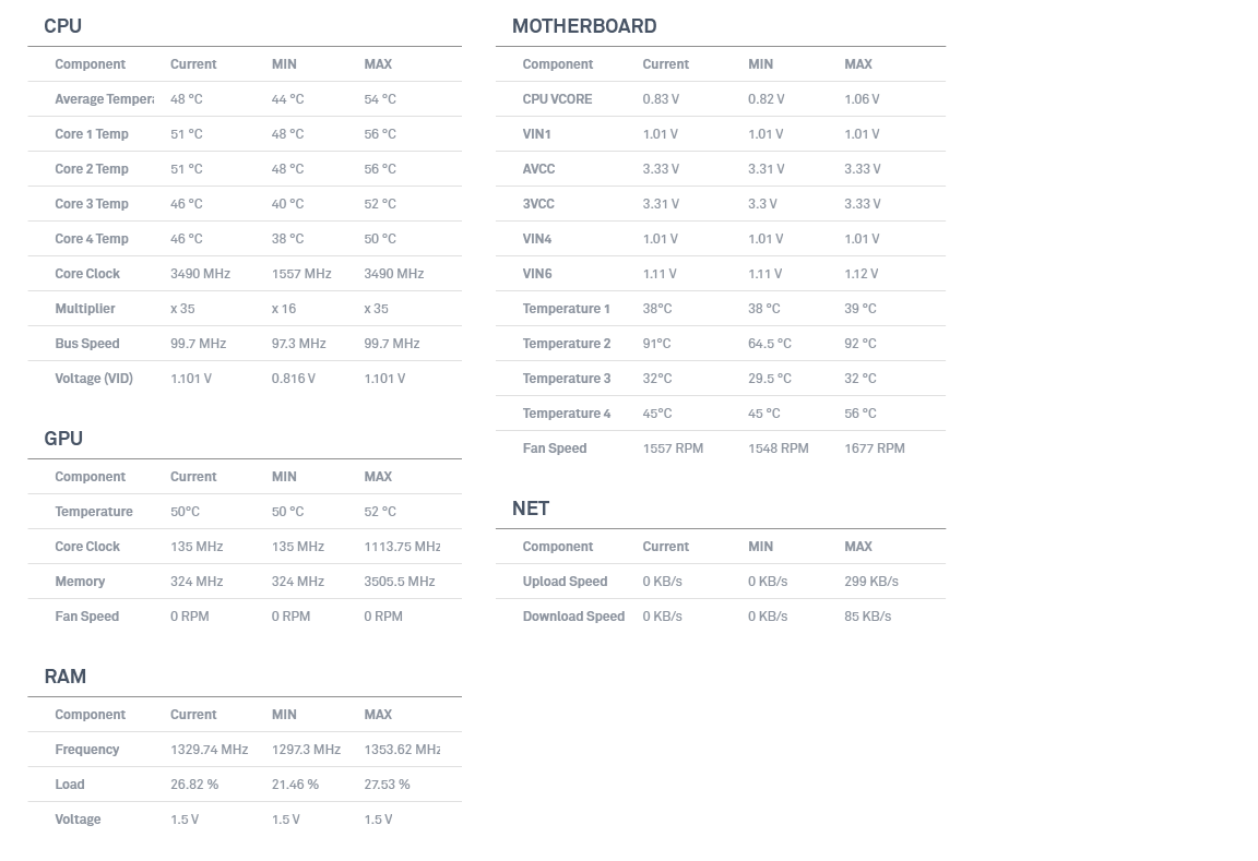 คือช่วงนี้ิเล่นเกมอยู่คือ world of warcraft แล้วสังเกตว่าเครื่องคอมมีเสียงแปลกๆ Mouse มีอาการ disconnect ตัวเองบ่อยครั้งๆ (แบบติดๆดับๆ พร้อมมีเสียงตึ๊งๆ ของ windows) แล้วไม่รู้วิตกจริตไปเองหรือเปล่าเพราะได้กลิ่นไหม้เบาๆด้วย เลยไปเช็คอุณภูมิ ก็ได้ตามรูปด้านบน