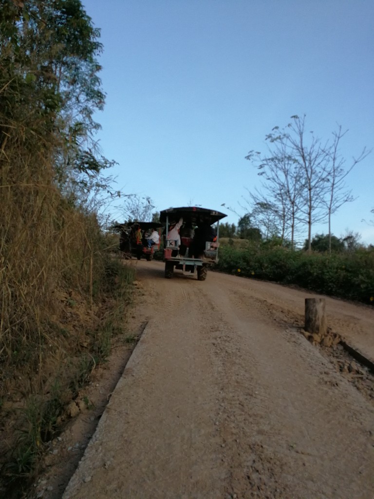 ออกเดินทางจากนนทบุรี่สี่ทุ่มถึงทางขึ้นฟูจิเมืองเลยตีหห้าครึ่งมีบริการรถอีแต๊กให้เช่าขึ้นไปนะค่ะเพราะเค้าไม่ให้นำรถขึ้นไปเอง ค่ารถคนล่ะ60 บาท