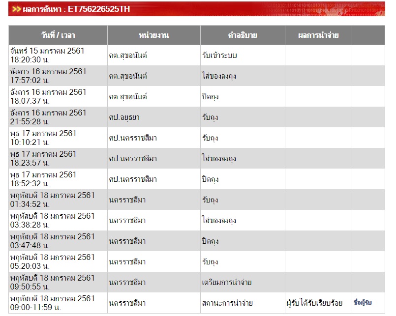 ส่งของเป็น EMS ตั้งแต่วันที่ 15 ม.ค. ขึ้นว่าผู้รับได้รับตั้งแต่ 18 ม.ค.