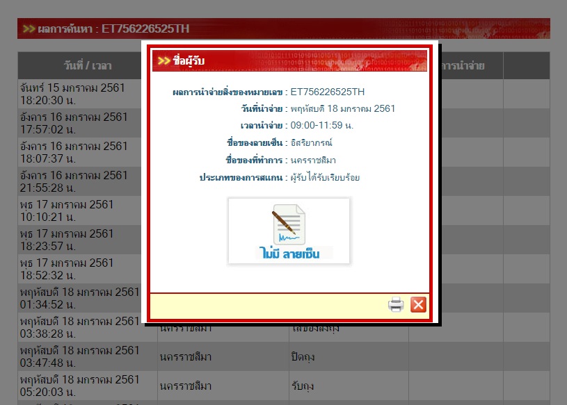 แต่ผู้รับตัวจริงแจ้งว่า ไม่มีคนชื่อนี้ตามที่แจ้งในระบบเลย