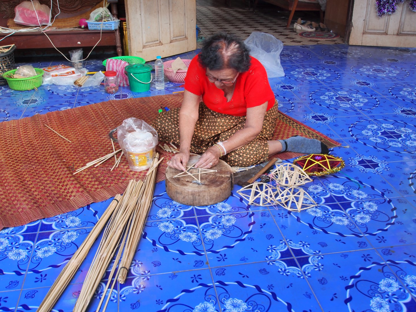 วันนี้ปกติคนจะไม่ทำดาวให้เห็นแล้ว เพราะส่วนมากจะทำเสร็จก่อนงาน แต่วันนี้โชคดีจะมีสื่อมวลชนมาเลยมีอยู่หนึ่งบ้านรอทำให้ดู ผมเลยแวะไปดูการทำดาว
