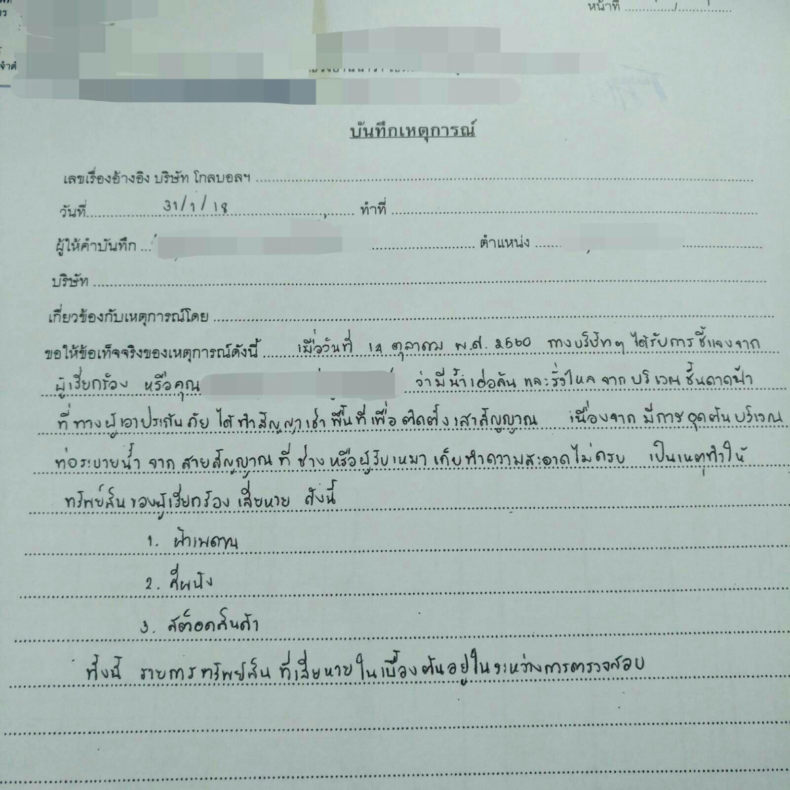 ทางเราก็รีบติดต่อไปที่บริษัทเพื่อให้ชดเชยความเสียหายและจ่ายค่าเช่าที่ค้างอยู่ประมาณ 3-4 เดือน ได้รับคำตอบว่าเจ้าหน้าที่คนเดิมพึ่งลาออกไปและไม่ได้ส่งเรื่องต่อให้กับเจ้าหน้าที่คนใหม่ เราก็คอยติดต่อไปถามตลอด 3 4 เดือนนี้ก็ได้รับคำตอบแต่ว่า ประสานงานให้แล้ว ให้รอนู่นรอนี่
