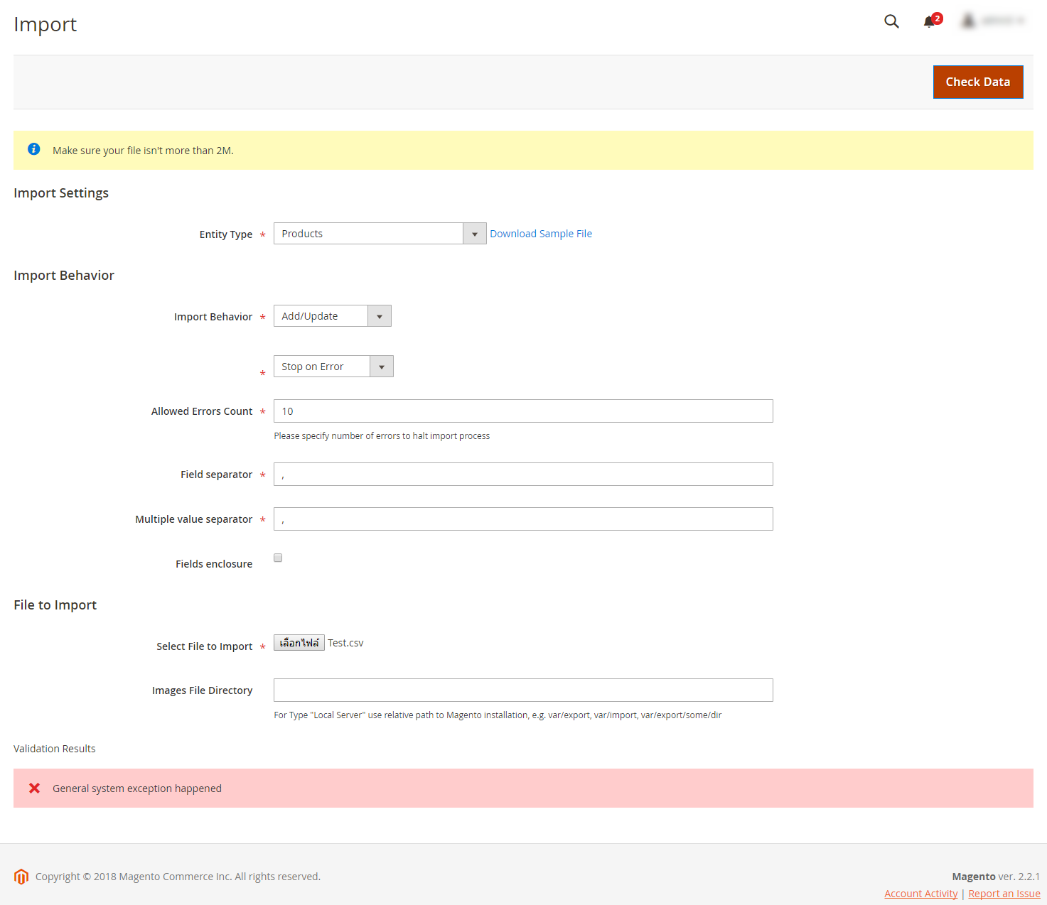 เจอERROR "General system exception happened" ในMagento 2.2.1 ต้องแก้ไขยังไงคะ ??