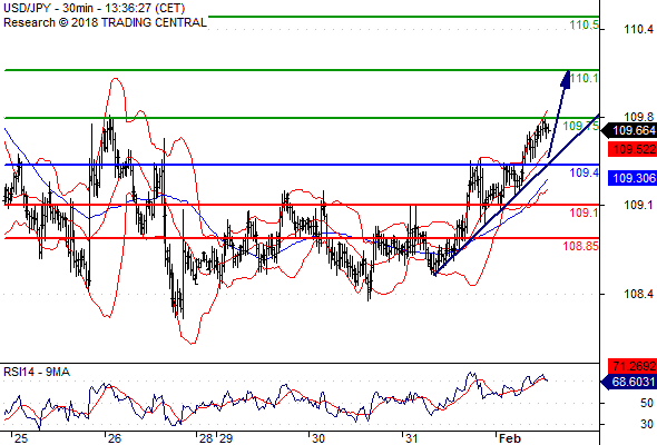 ความเห็นในเชิงเทคนิค: การทะลุผ่านเหนือระดับ 109.40 ขึ้นไปเป็นสัญญาณบวกที่เปิดโอกาสให้ไปอยู่ที่ 109.75 ได้