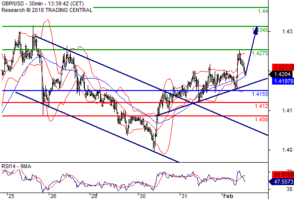 จุดที่ต้องการ: สถานะซื้อสูงกว่า 1.4155 เป้าหมายต่อไปที่ 1.4275 และ 1.4345