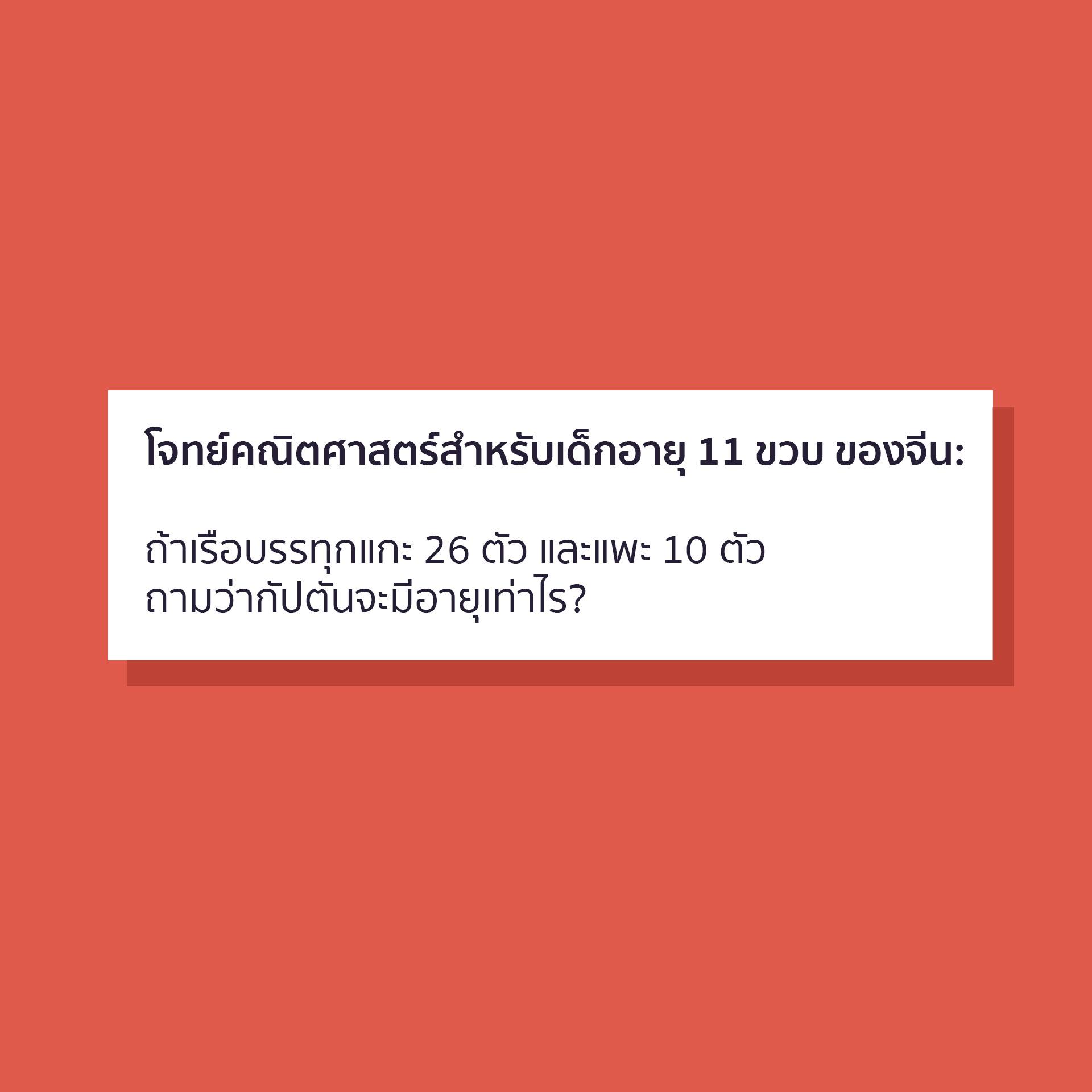 ถ้าเรือบรรทุกแกะ 26 ตัว และแพะ 10 ตัว ถามว่ากัปตันจะมีอายุเท่าไร?