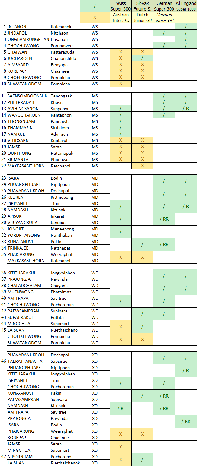 คือ Swiss Open (Super 300) German Open (Super 300) และ All England Open (Super 1000)